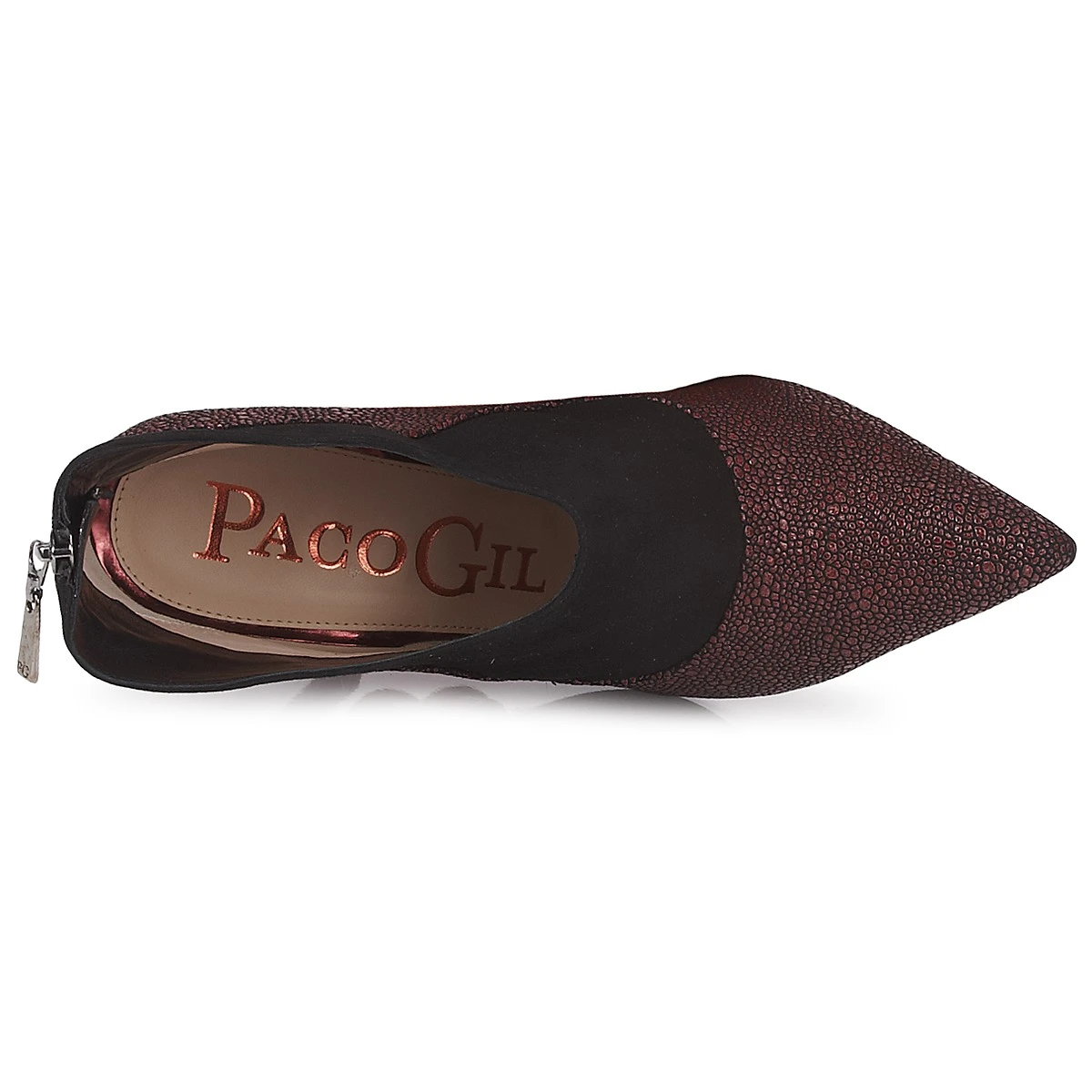 Cette low boot en cuir fait partie intégrante des fondamentaux de la nouvelle collection automne – hiver Paco Gil. Dessinant un escarpin en trompe l’oeil et arborant un talon aiguille, elle se distingue par un décolleté plongeant des plus sensuels.