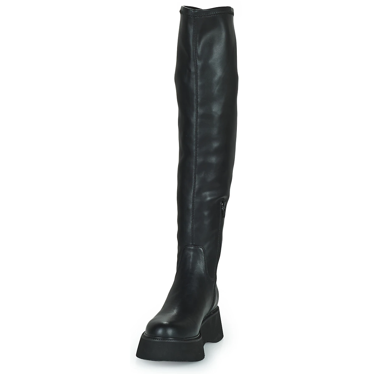 Prenez une longueur d’avance avec cette cuissarde imaginée par Café Noir. Grâce à sa tige en synthétique et à sa couleur noire, plus besoin de choisir entre confort et esthétique. Petit détail non négligeable, sa semelle extérieure est en synthétique assurant souplesse et robustesse. Promenez vous sereinement avec son talon de 5!