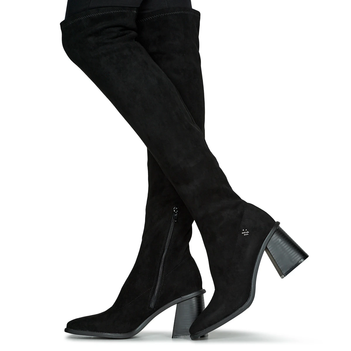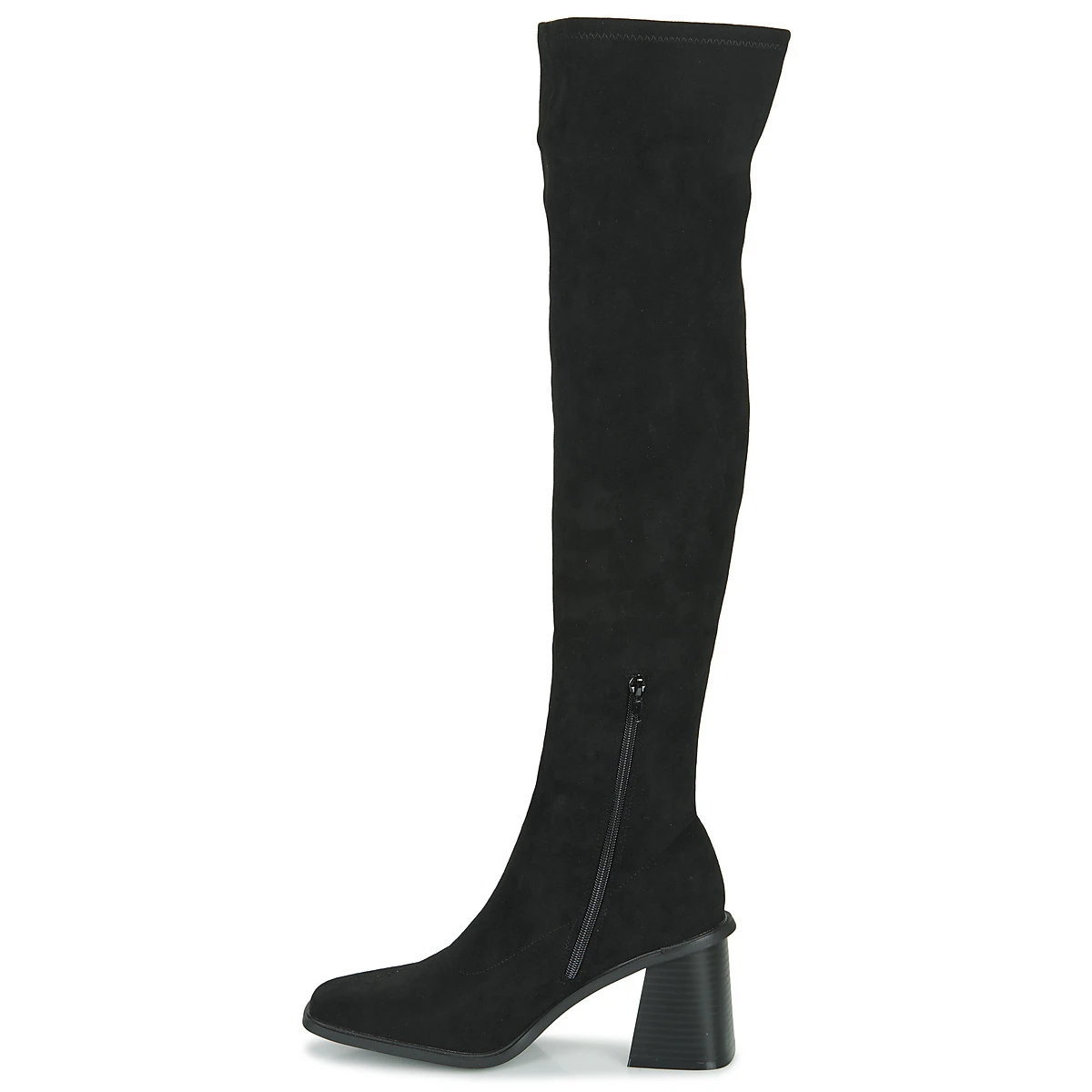 La cuissarde Amandine de chez Vanessa Wu s’inscrit pile dans la tendance du moment. Grâce à sa tige en synthétique et à sa couleur noire, plus besoin de choisir entre confort et esthétique. Côté confort, elle est équipée d’une semelle en caoutchouc.