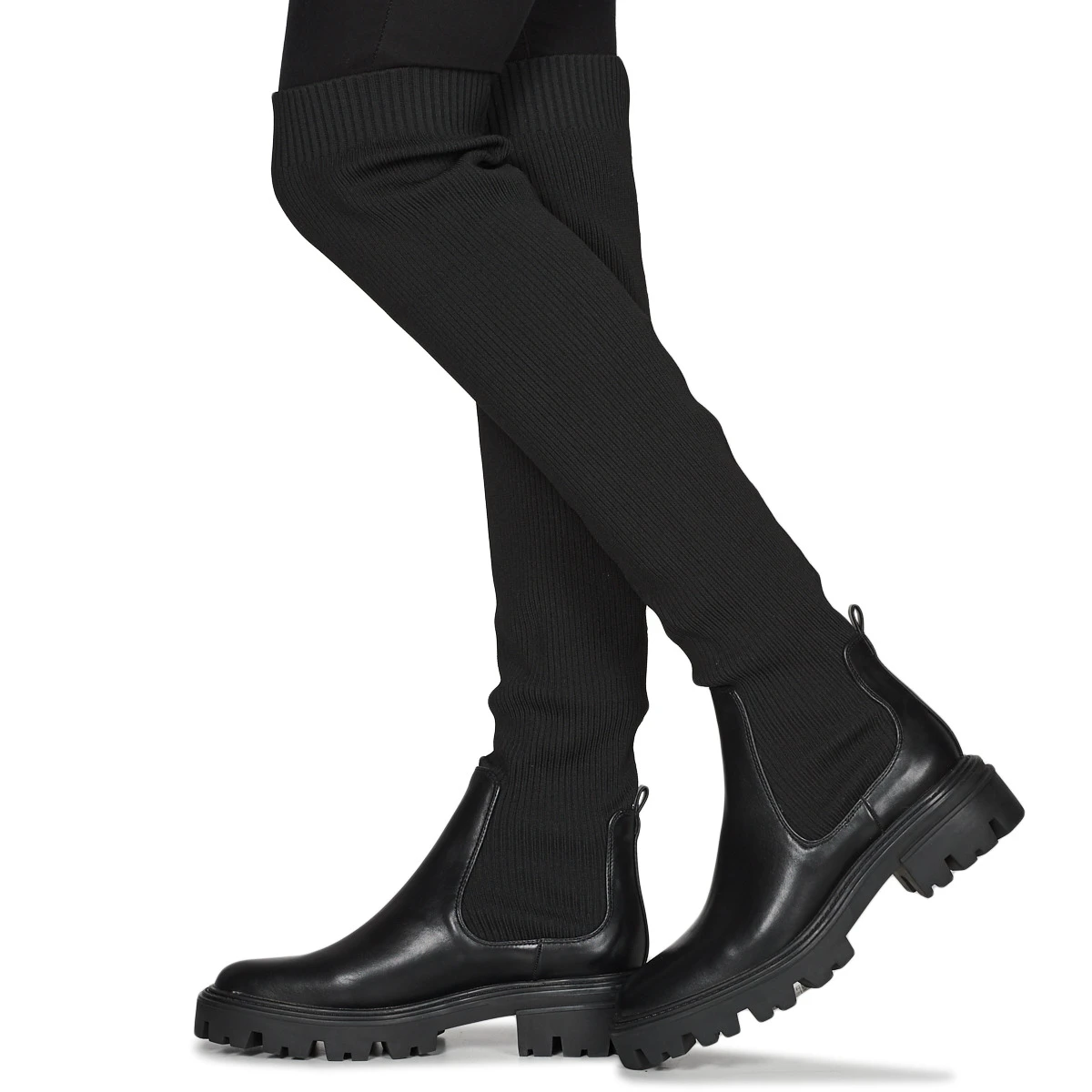 Véritable atout de notre féminité au cœur de l’hiver, la cuissarde se décline chez Vanessa Wu pour notre plus grande satisfaction. Ces cuissardes de couleur noire sont composées d’une tige en synthétique et textile et d’une doublure en textile qui seront vos alliées de choc ! Sa semelle extérieure est en synthétique.