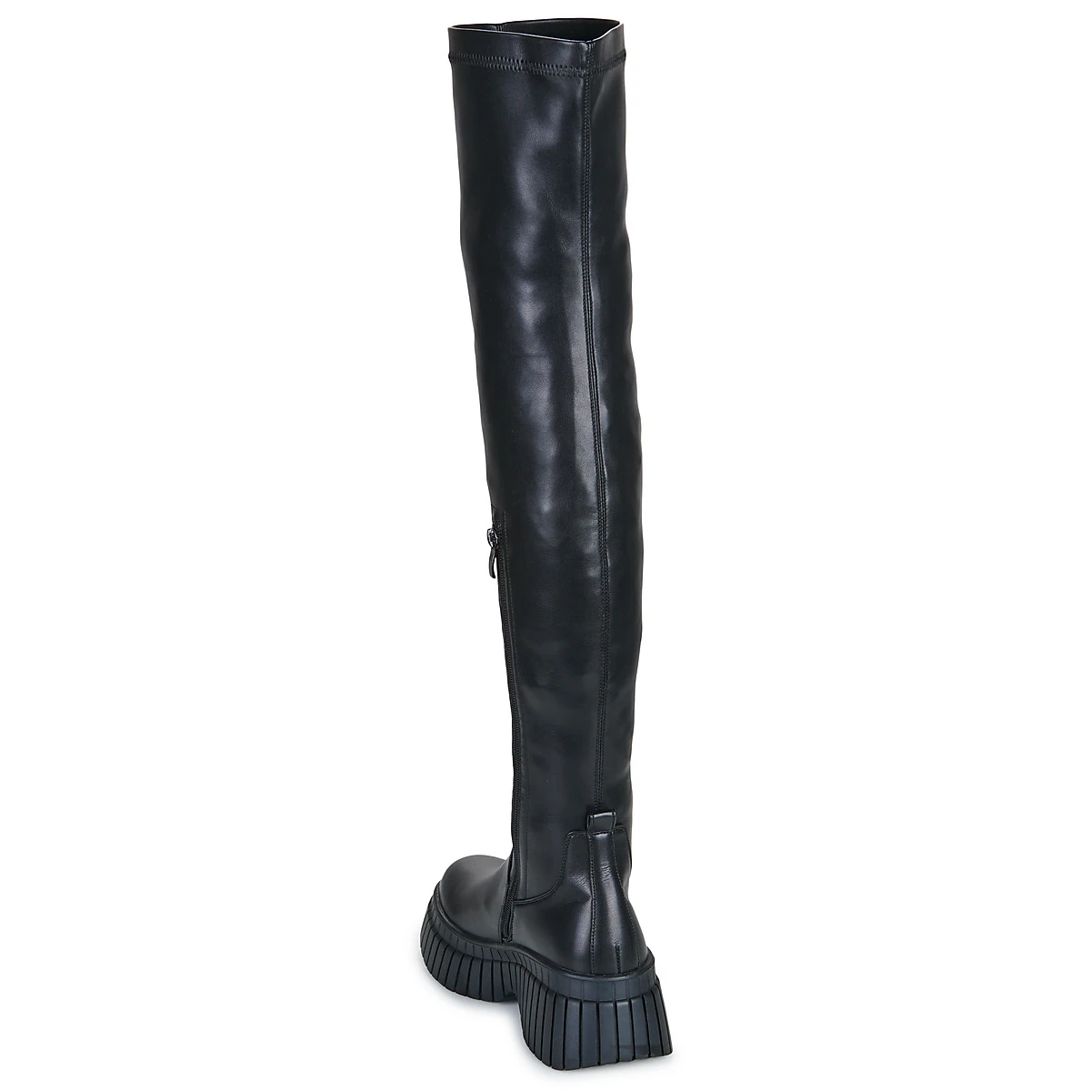 De la féminité : c’est tout ce qu’on demande à cette cuissarde signée Exé Shoes. Son talon de 6 cm plaira aux fans du genre.